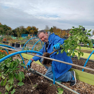 Lots to do on the Dig It Community Allotment plot today, clearing the peppers away so the last fruits can be harvested and the plants chopped for compost. Then some donated canna lilies and a huge banana plant to be potted on to be overwintered in the greenhouse. There was compost to turn and carrots and cabbage to be harvested and cleaned ready for our group lunch. Jacket potatoes baked this morning kept hot in rolls of sheep’s wool served with good old beans and cheese and some coleslaw chopped and mixed just after our harvest. All followed by Ewelinas fabulous s’mores and candy sparklers fun for us all to decorate and toast - yum yum !