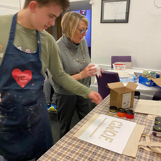 Group get together at Fast Eddie’s Bar, Fairycroft tonight. Screen printing tote bags (which will be for sale as part of our Enterprise Project), marshmallow Easter bunnies, fun, laughter and karaoke!