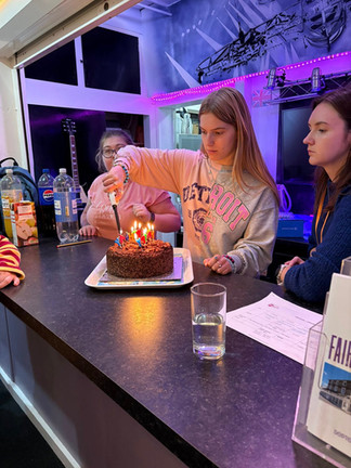 We created designs for our Christmas cards and made thank you cards. We then celebrated some of our member’s birthdays with cake and singing!