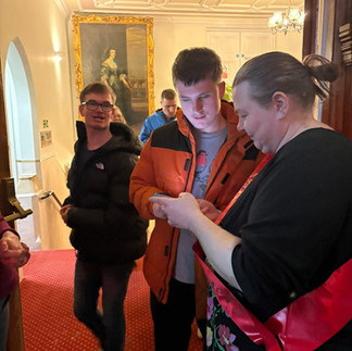 First our members paid for their own tickets - practicing life skills, then met all the cast of the show. Each cast member explained who they were and what part they play.